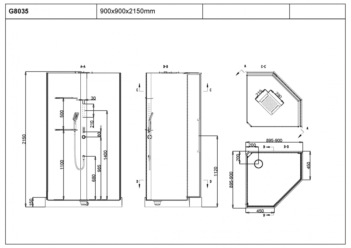 Размеры 90х90х215