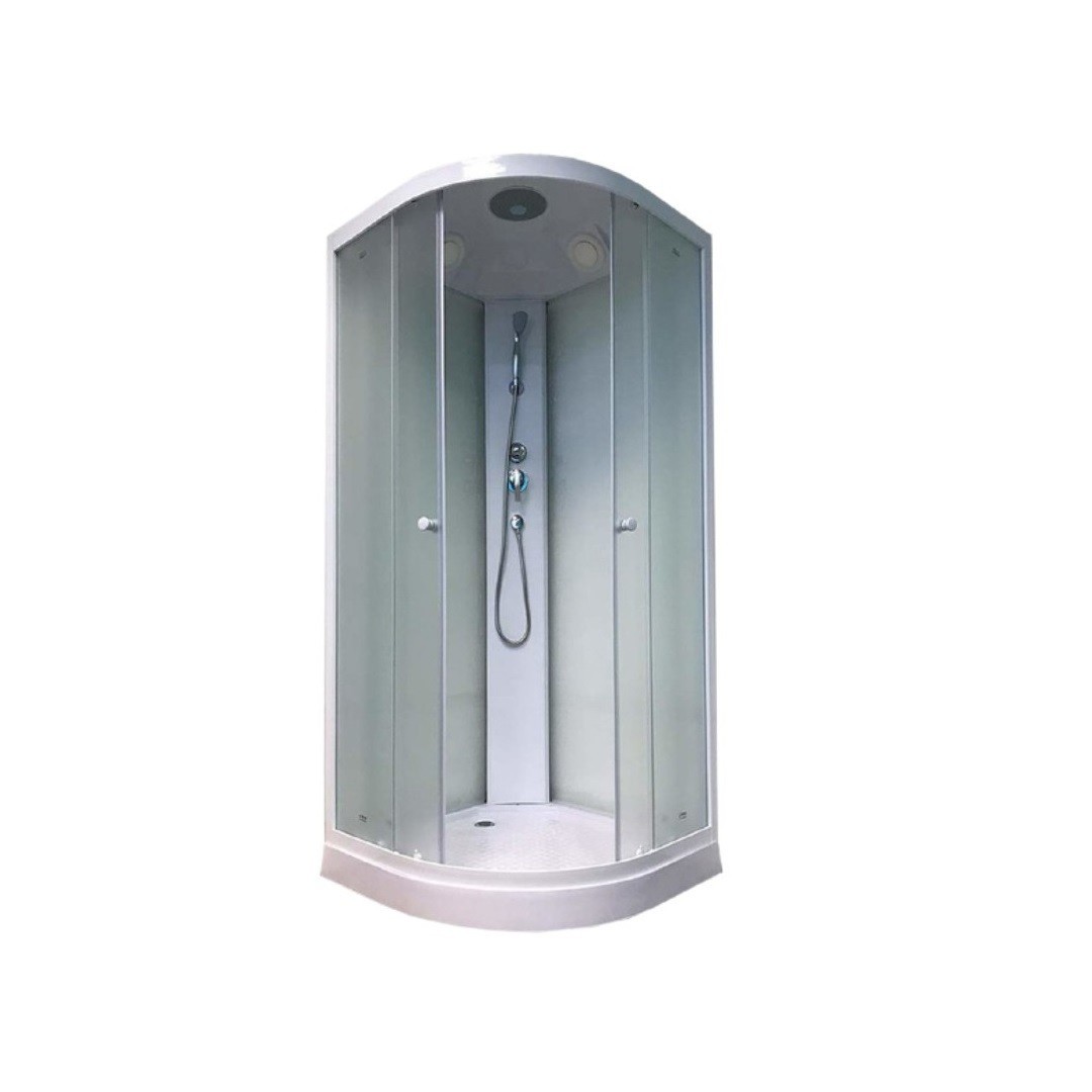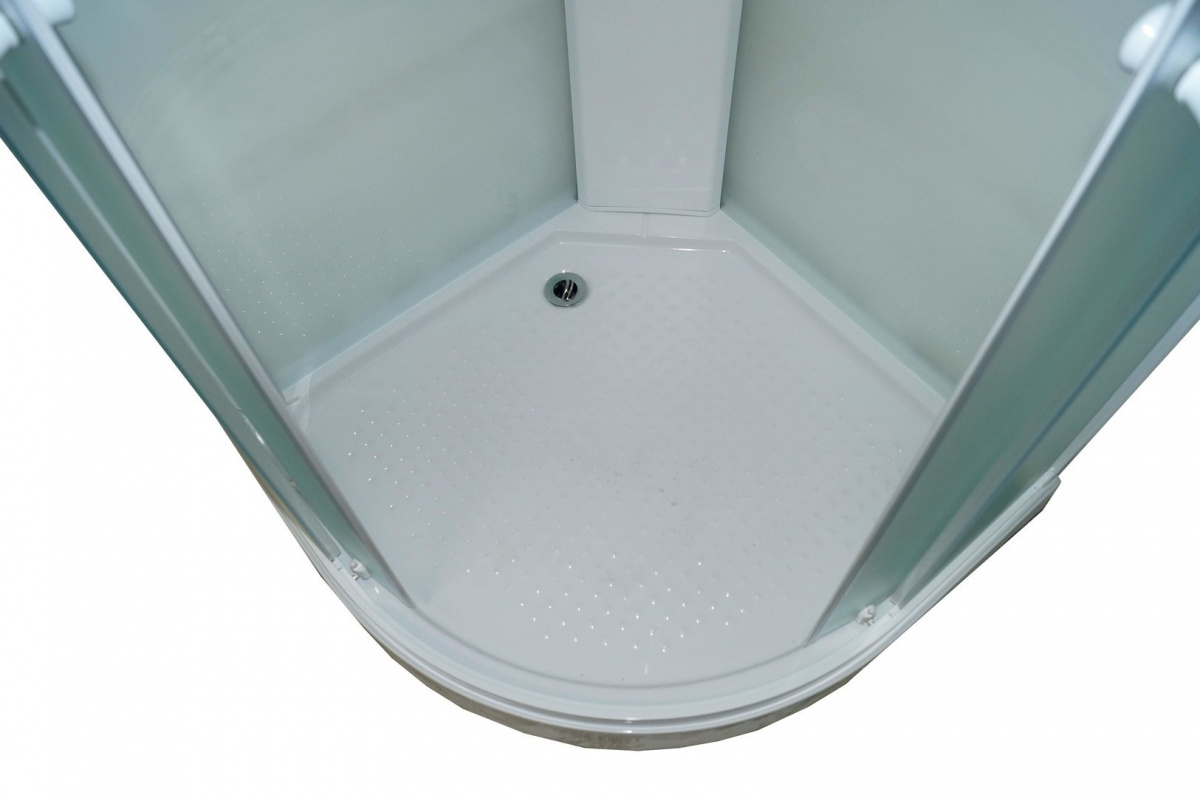 Бюджетная компактная кабина – отличный выбор для маленькой ванной комнаты и дачи. Светлая кабина визуально расширяет пространство, а полукругла форма экономит полезную площадь в санузле.