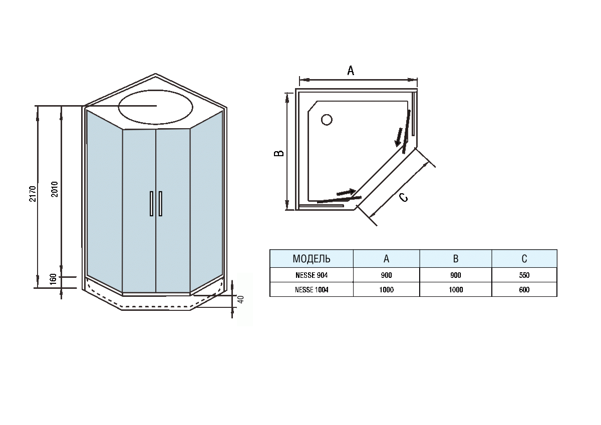 Душевая кабина WeltWasser NESSE 904 900х900х2170 мм
