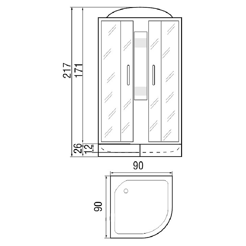 Размеры 90х90х217см.