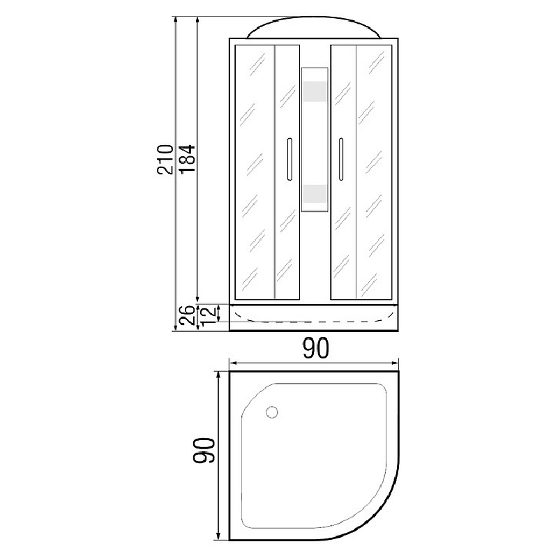Размеры 90х90х210см.