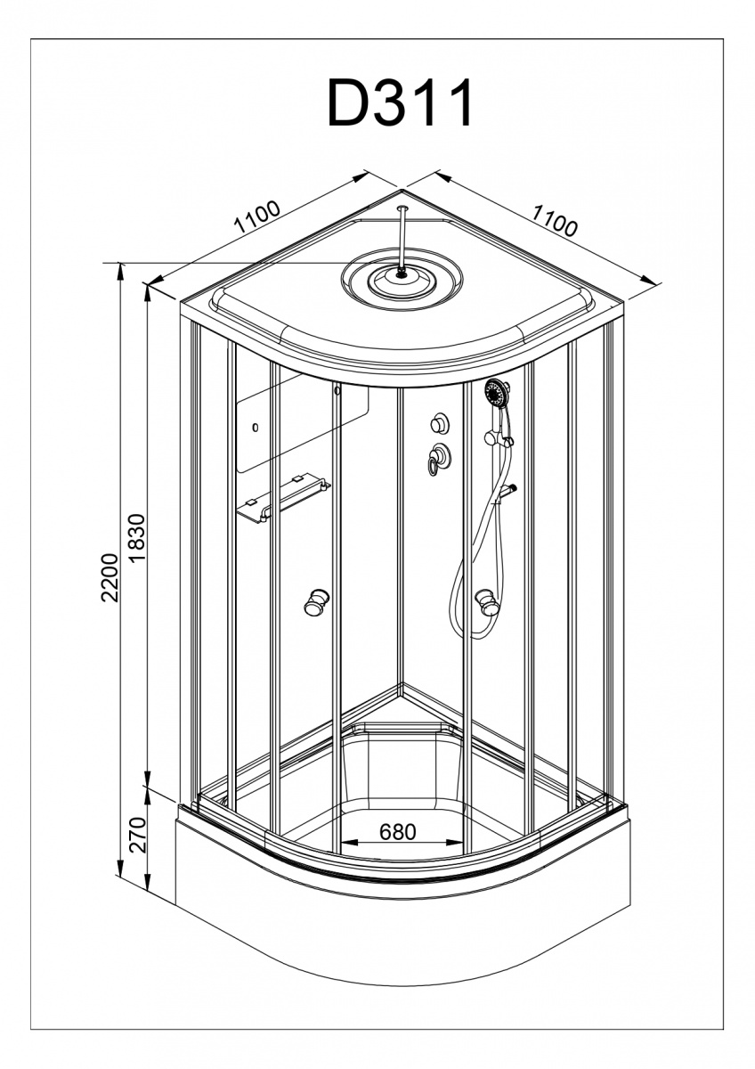 Стильная душевая кабина с в нутренней сборкой AvaCan D311S LED сочетает в себе высокую функциональность, практичность и надежность. Для изготовления применяют безопасное закаленное стекло толщиной 4 мм, надежно фиксируемое алюминиевым профилем. Цвет профиля хром. В комплекте сифон, полочка, зеркало, сенсорный пульт управления, смеситель, переключатель режимов, душевой гарнитур,  тропический (верхний) душ, вентиляция, радио.