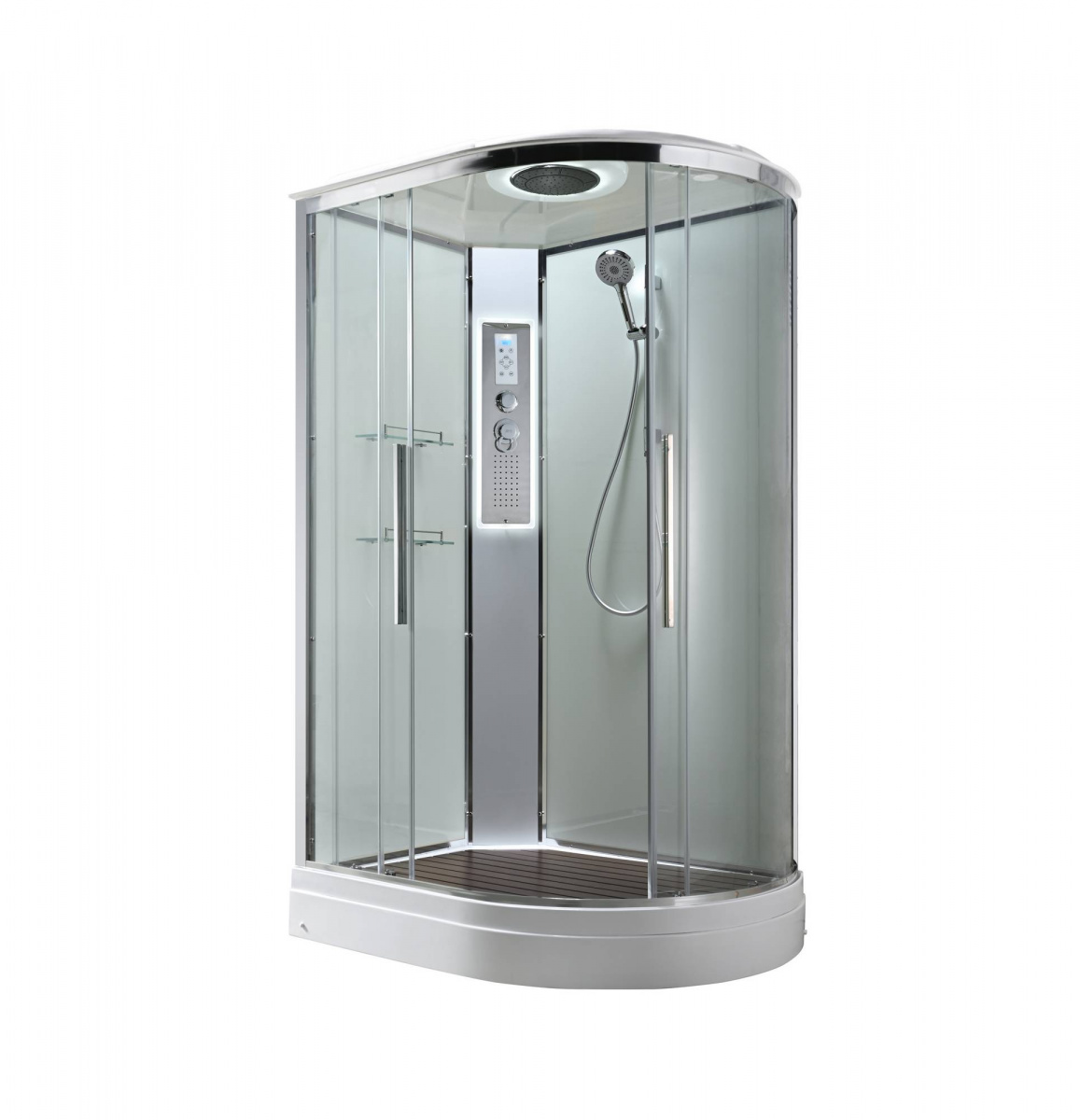 Стильная душевая кабина AvaCan EM2811LLEDT сочетает в себе высокую функциональность, практичность и надежность. При изготовлении применяется безопасное закаленное стекло толщиной 5 мм (прозрачное), надежно фиксируемое алюминиевым профилем. Сборка без силикона (увеличивает срок службы), внутренняя сборка(облегчает установку и ревизию; позволяет установить в ограниченном пространстве), смеситель резьбовой (без хомутов). Съемный экран поддона (позволяет осуществлять ревизию сифона). Цвет профиля  хром. Двойные металлические ролики дверей (увеличивают срок службы).В комплекте : душевая штанга, две полочки , тропический (верхний) душ, арома-лейка с витамином С (картридж съемный),полимерная вставка в поддон(имитация дерева),сифон, ручки дверей из нержавейки , двойные ролики ,пульт сенсорный(Блютуз ,LED подсветка ,радио ,вытяжка),гидромассаж спины.