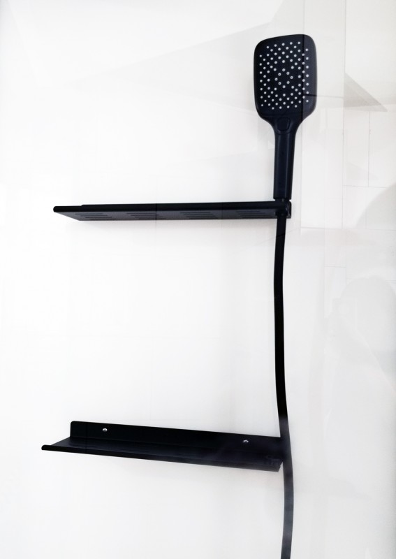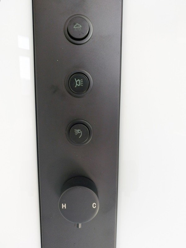 Функциональная панель из ПВХ с 3-позиционным переключателем (кнопочное управление), ручной лейкой из ПВХ, гидромассажными форсунками, полкой и шлангом из ПВХ (длина 1,5 м);