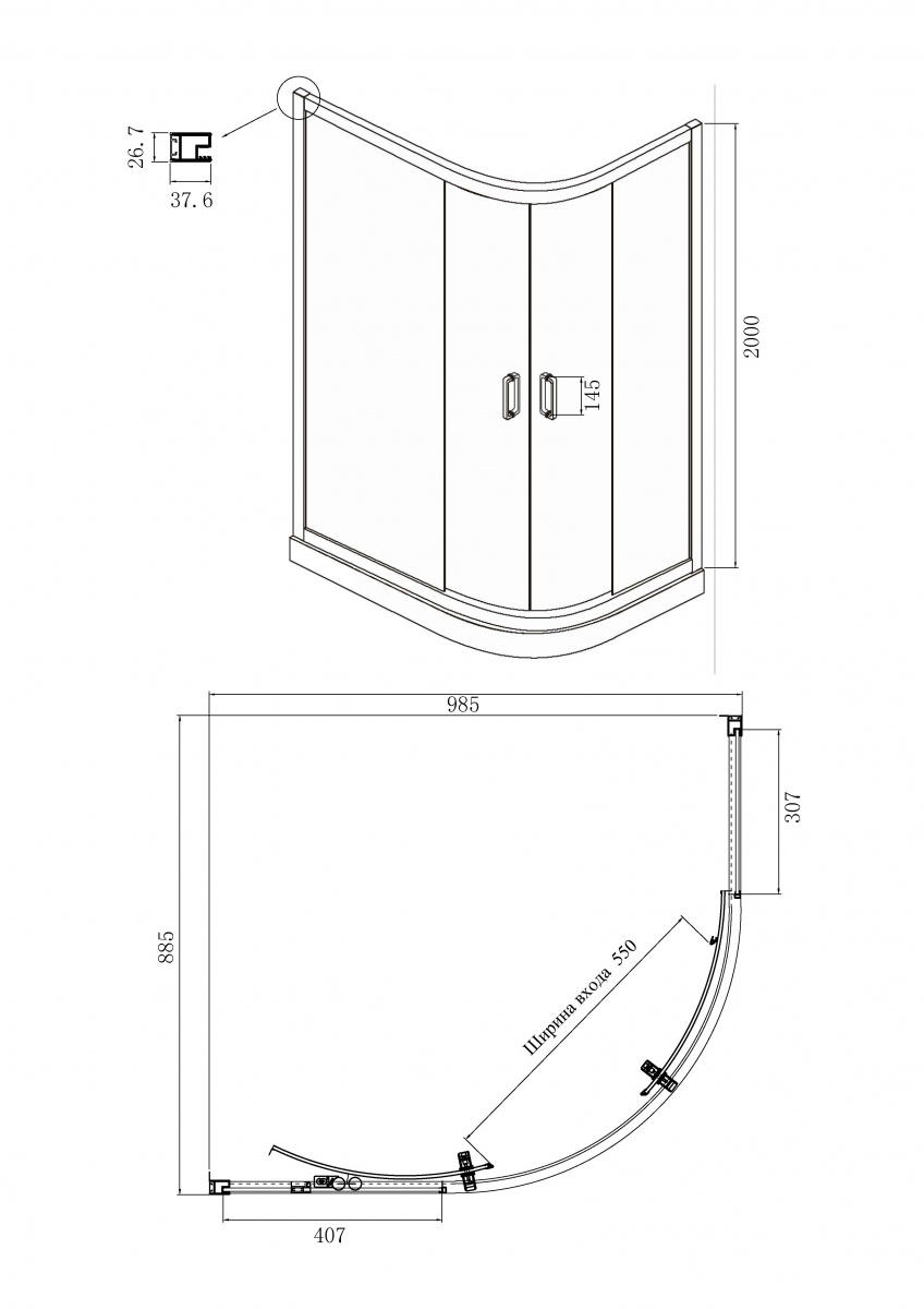 Душевое ограждение Ambassador Kingston 14011107 (1000x900x2000), 1 место