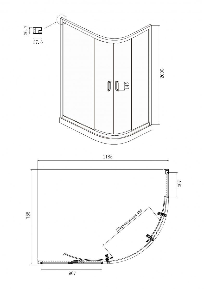 Душевое ограждение Ambassador Kingston 14011108 (1200x800x2000), 1 место