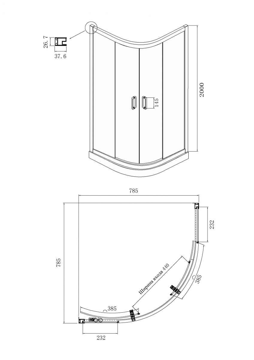 Душевое ограждение Ambassador Kingston 14011206 (800x800x2000), 1 место
