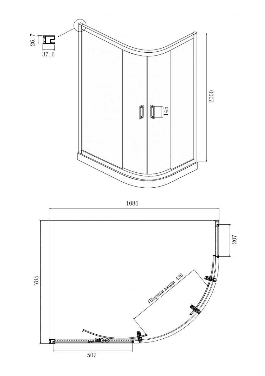Душевое ограждение Ambassador Kingston 14011210 (1100x800x2000), 1 место