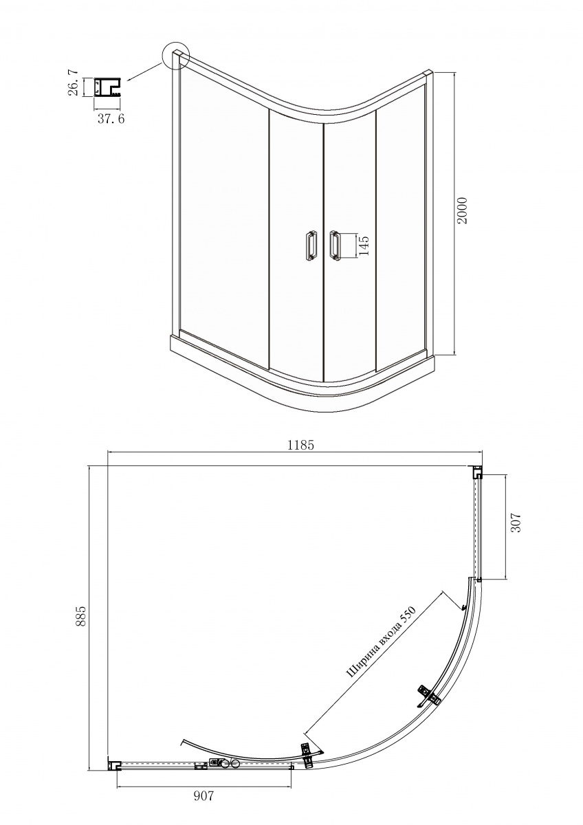 Душевое ограждение Ambassador Royal 18015302 (1200x900x2000), 1 место