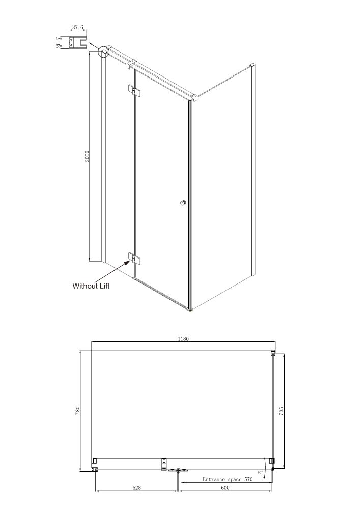 Душевое ограждение Ambassador Diamond 12011104L (1200x800x2000), 1 место