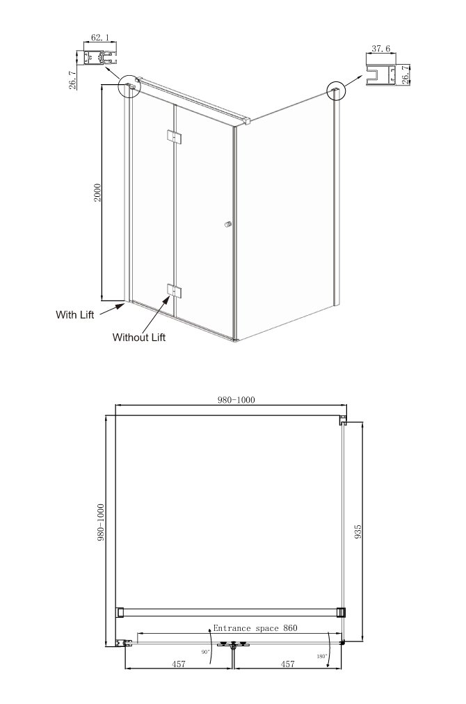 Душевое ограждение Ambassador Diamond 12011106L (1000x1000x2000), 1 место