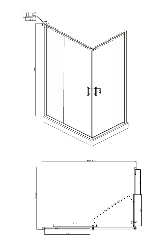 Душевое ограждение Ambassador Kingston 14011101 (1200x800x2000), 1 место