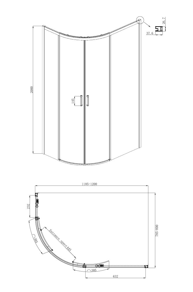 Душевое ограждение Ambassador Queen 11011103R (1200x800x2000), 2 места