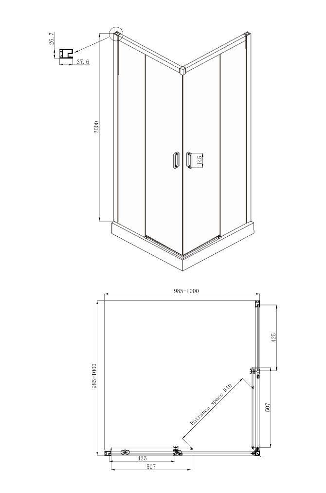 Душевое ограждение Ambassador Queen 11011105 (1000x1000x2000), 1 место