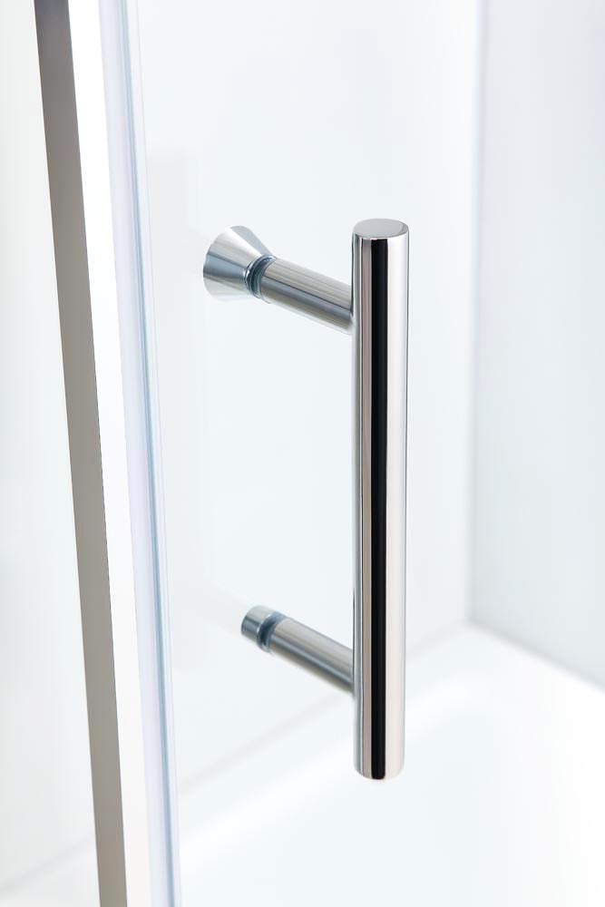 • Закаленное стекло Pilkington OptiWhite™ • Хромированный, анодированный алюминиевый профиль • Толщина стекла 6 мм • Двойные металлические ролики с быстросъемным механизмом • Раздвижные двери • Допуск на установку 20 мм • Металлические ручки 200 мм