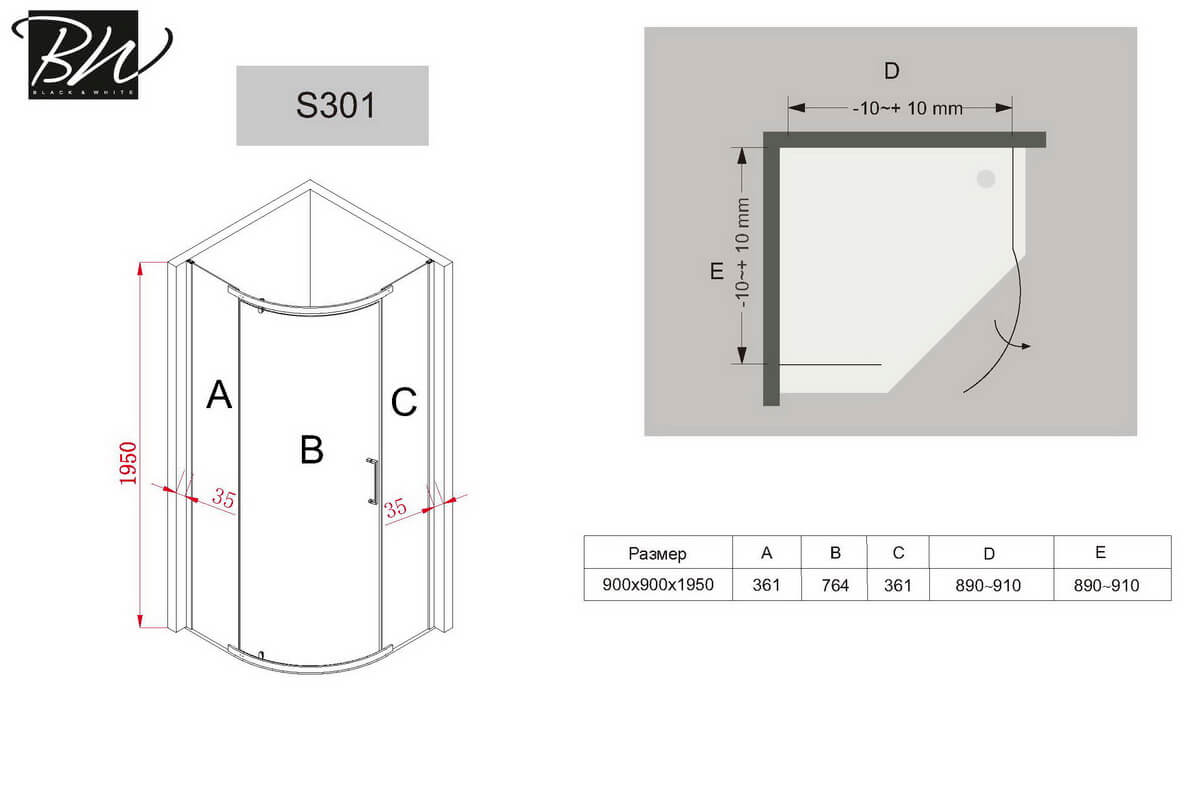 Душевое ограждение Black & White S301