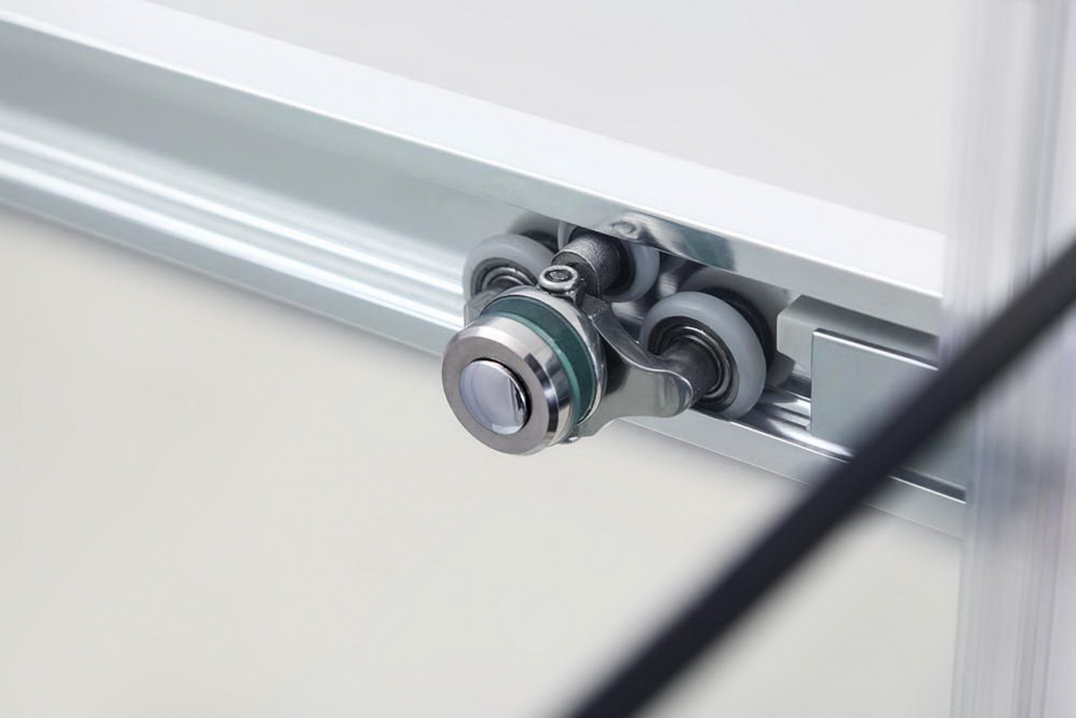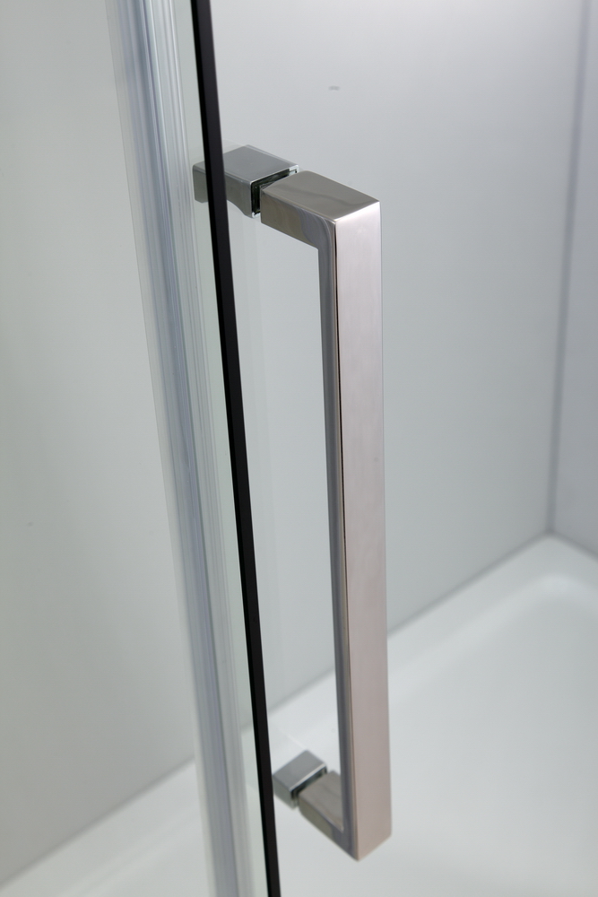 • Закаленное стекло Pilkington OptiWhite™ • Хромированный, анодированный, алюминиевый профиль • Толщина стекла 8 мм • Монорельсовая конструкция роликов • Усиленные, тройные, металлические ролики • Раздвижная двери • Допуск на установку 20 мм • Металлические ручки 300 мм