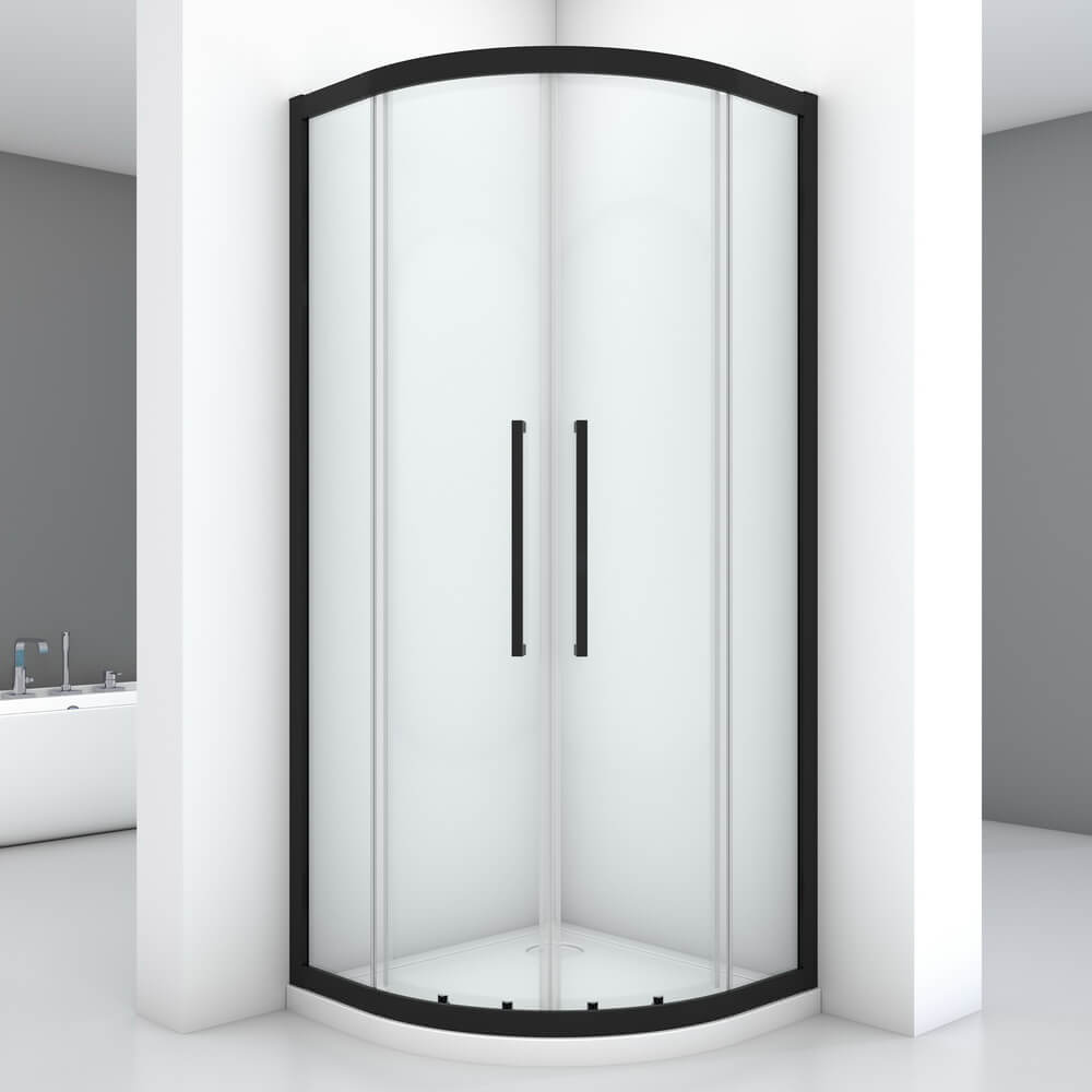 • Закаленное стекло Pilkington OptiWhite™ • Черный матовый, анодированный алюминиевый профиль • Двойные металлические ролики • Толщина стекла 8 мм • Анти-капельное покрытие Anti-Dribble • Раздвижные двери • Быстросъемный механизм роликов • Допуск на установку 20 мм • Металлические ручки 440 мм