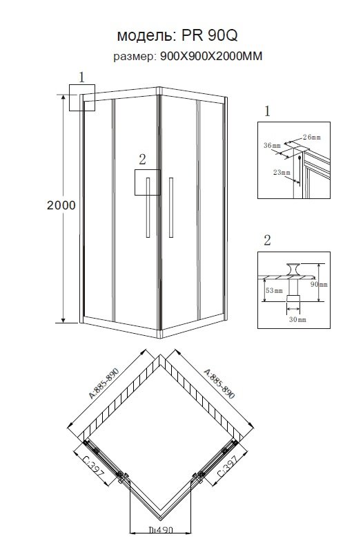 Душевое ограждение GROSSMAN PR-90SQ (90x90x200)