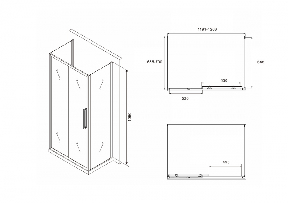 Душевой уголок ABBER Schwarzer Diamant AG30120BH-S70B-S70B