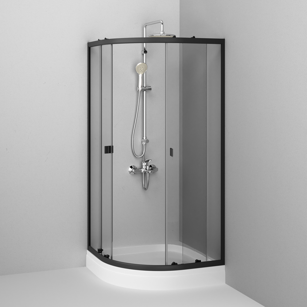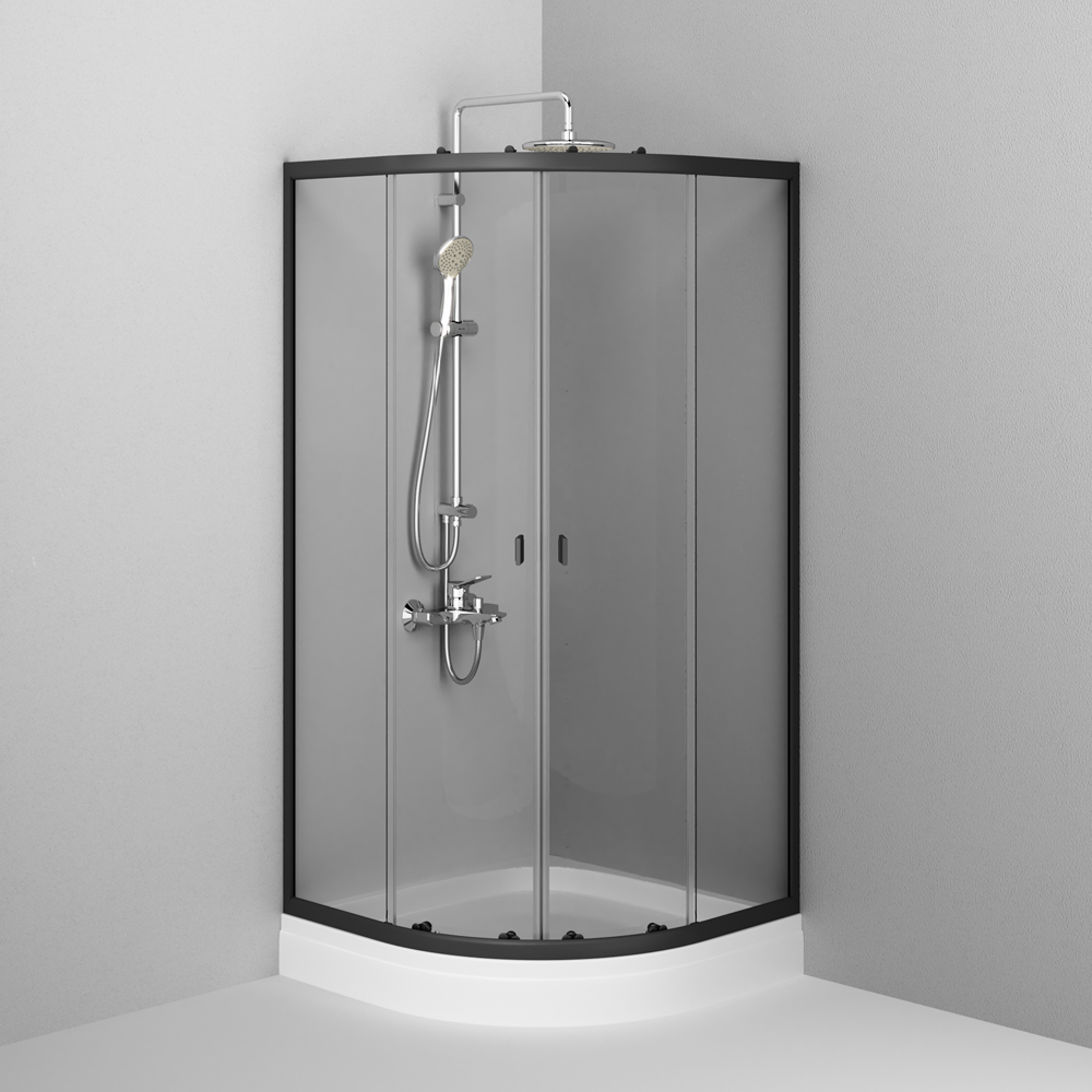 Цвет стекла прозрачные, профиль матовый черный, поддон белый