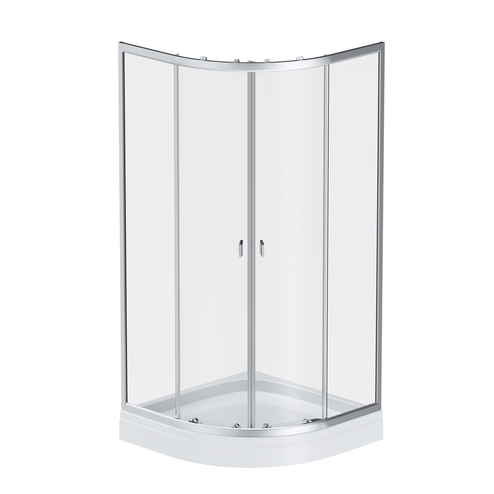 Цвет стекла прозрачные, профиль матовый хром, поддон белый