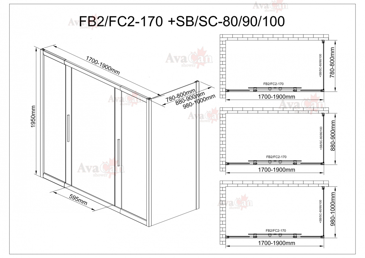 Душевой уголок AvaCan FB2 170-190 + SB100
