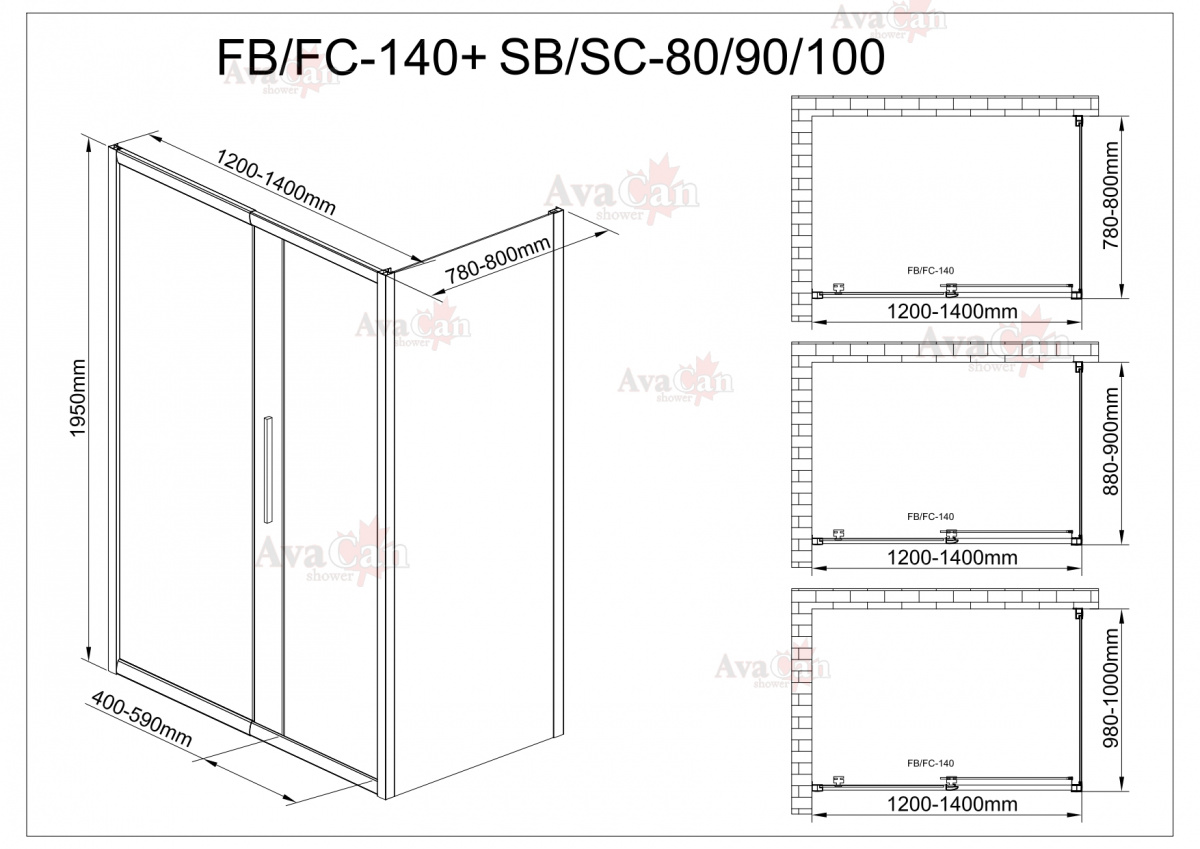 Душевой уголок AvaCan FB 120-140 + SB 80