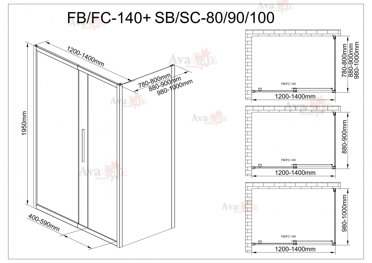 Душевой уголок AvaCan FB 120-140 + SB 90
