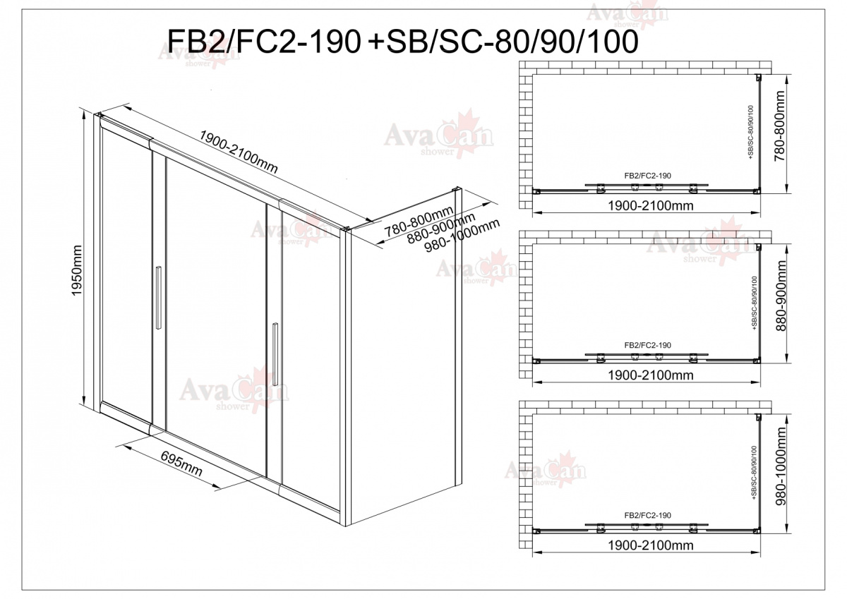 Душевой уголок AvaCan FC2 190-210 + SC80