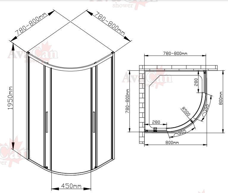 • Душевой уголок AvaCan HB 80 MT