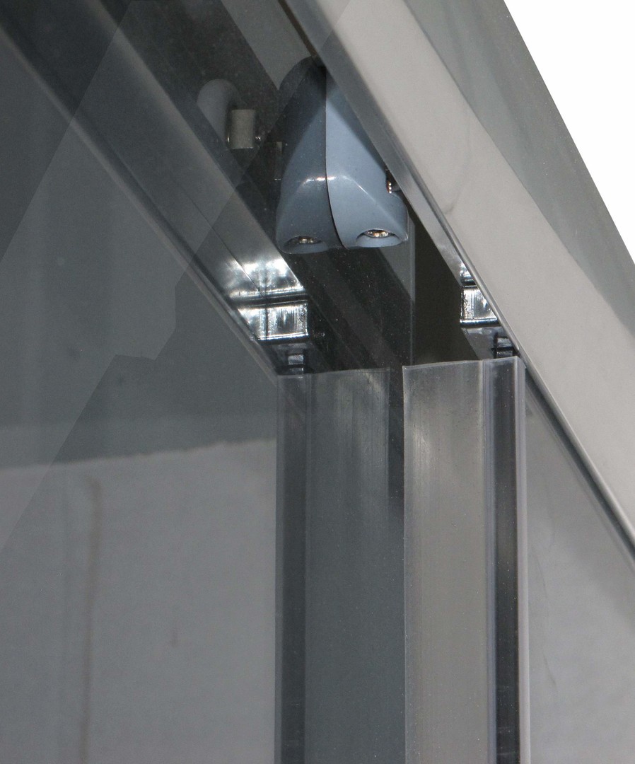 Тип: душевой уголок БЕЗ ПОДДОНА СБОРКА: универсальная L / R Стекло: 5 мм тонированное закаленное Профиль: полированный алюминиевый Ролики: верхние двойные на клипсах, одинарные нижние Ручки: нержавеющая сталь Особенность: не стандартный размер