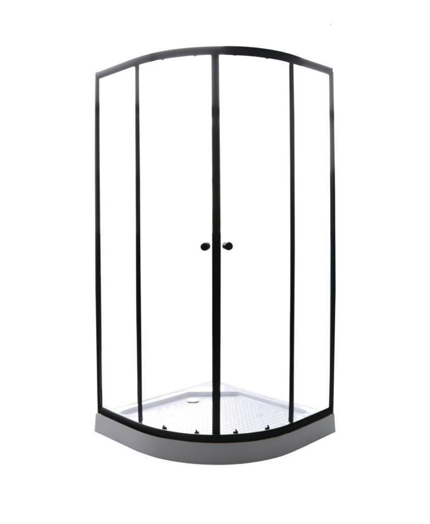 Тип: душевой уголок Стекло: 4 мм прозрачное закаленное Профиль: черный алюминиевый Поддон: низкий 10см, полукруглый Ролики: одинарные вверху и одинарные нажимные внизу Сифон: в комплекте