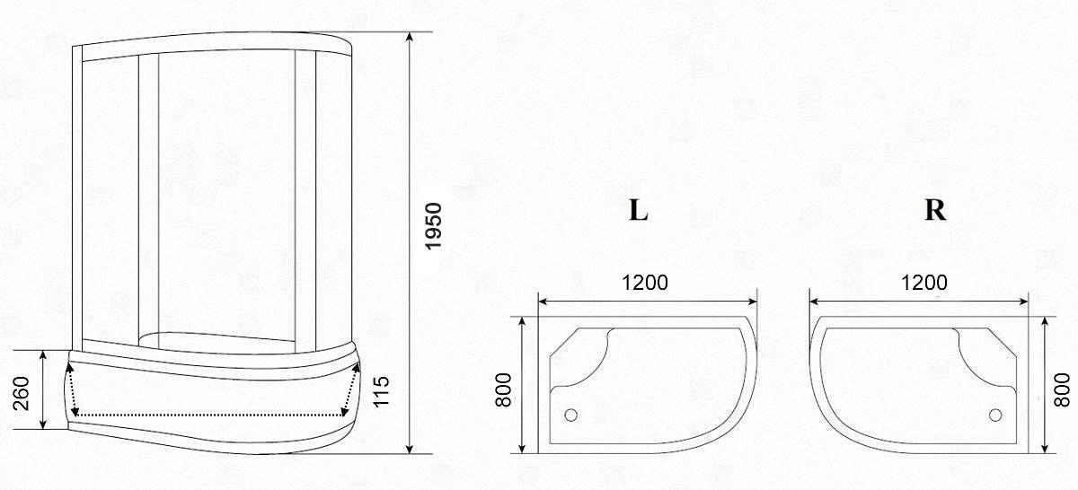 Душевой уголок Parly ZEM120P-R Средний поддон