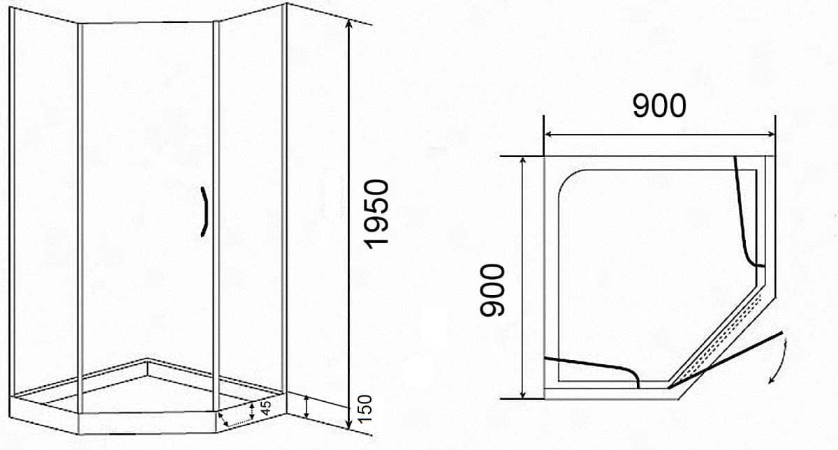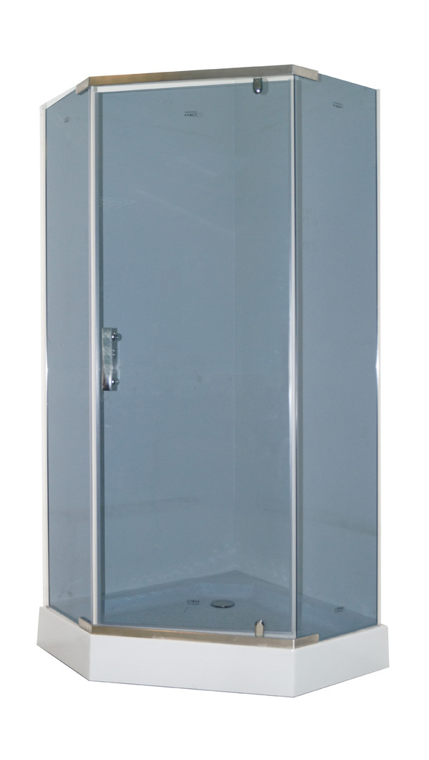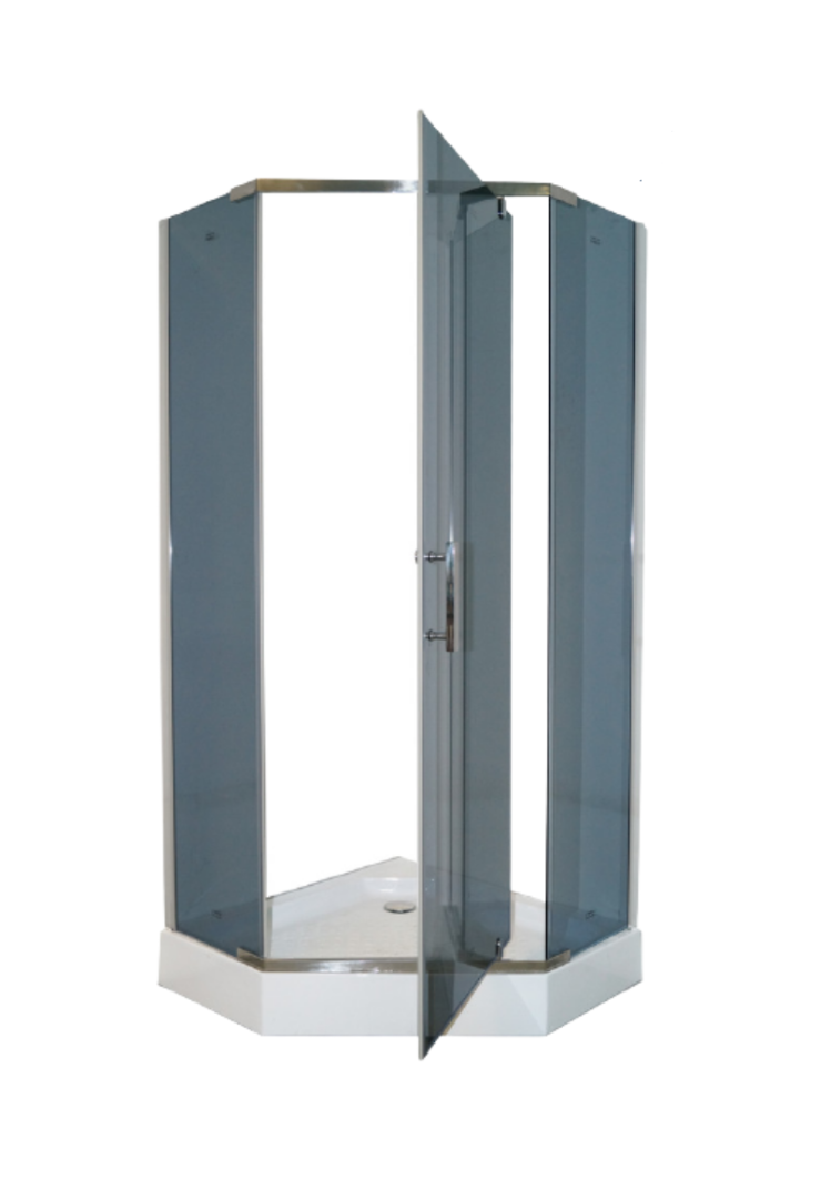 Тип: душевой уголок Стекло: 6 мм тонированное закаленное Профиль: полированный алюминиевый Поддон: низкий 10см, трапеция Петли: цельнометаллические Сифон: в комплекте Ручки: нержавеющая сталь Особенность: распашные двери
