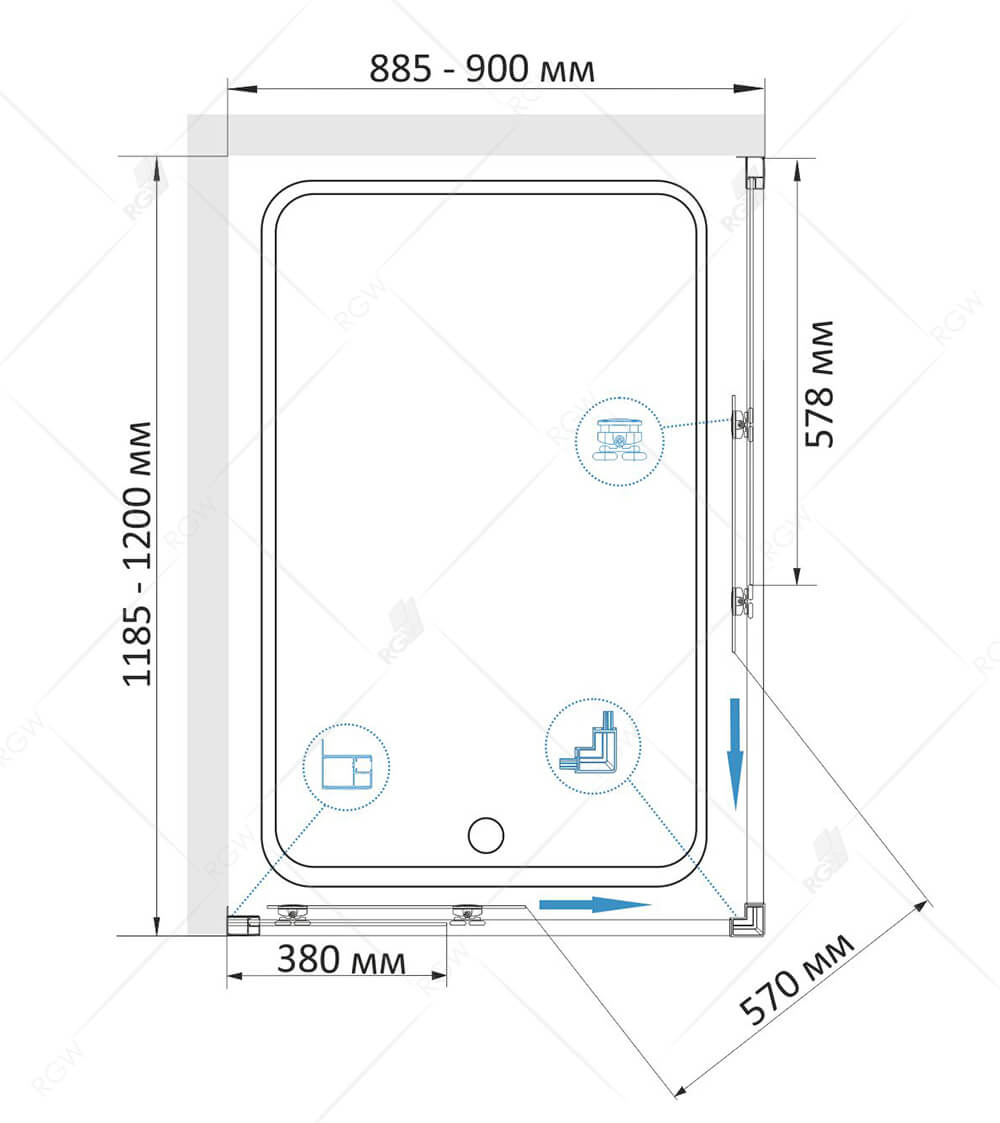 Душевой уголок RGW CL-44B Прозрачное 900x1200