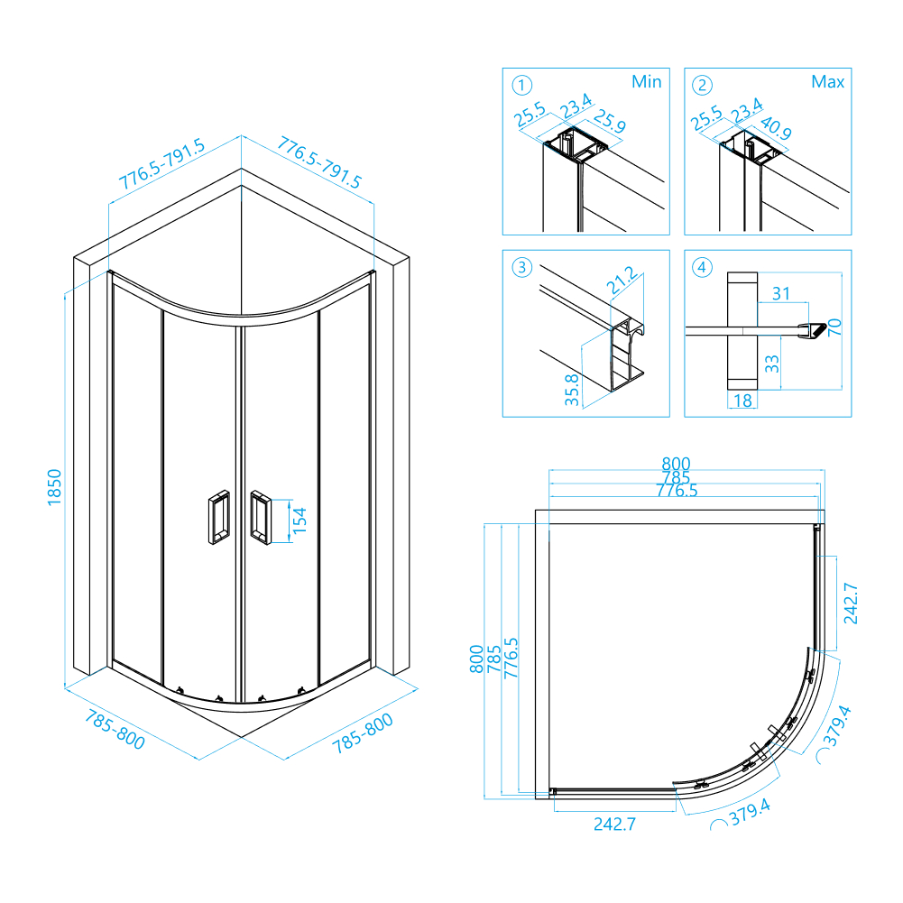 Душевой уголок RGW CL-54B Прозрачное 800x800