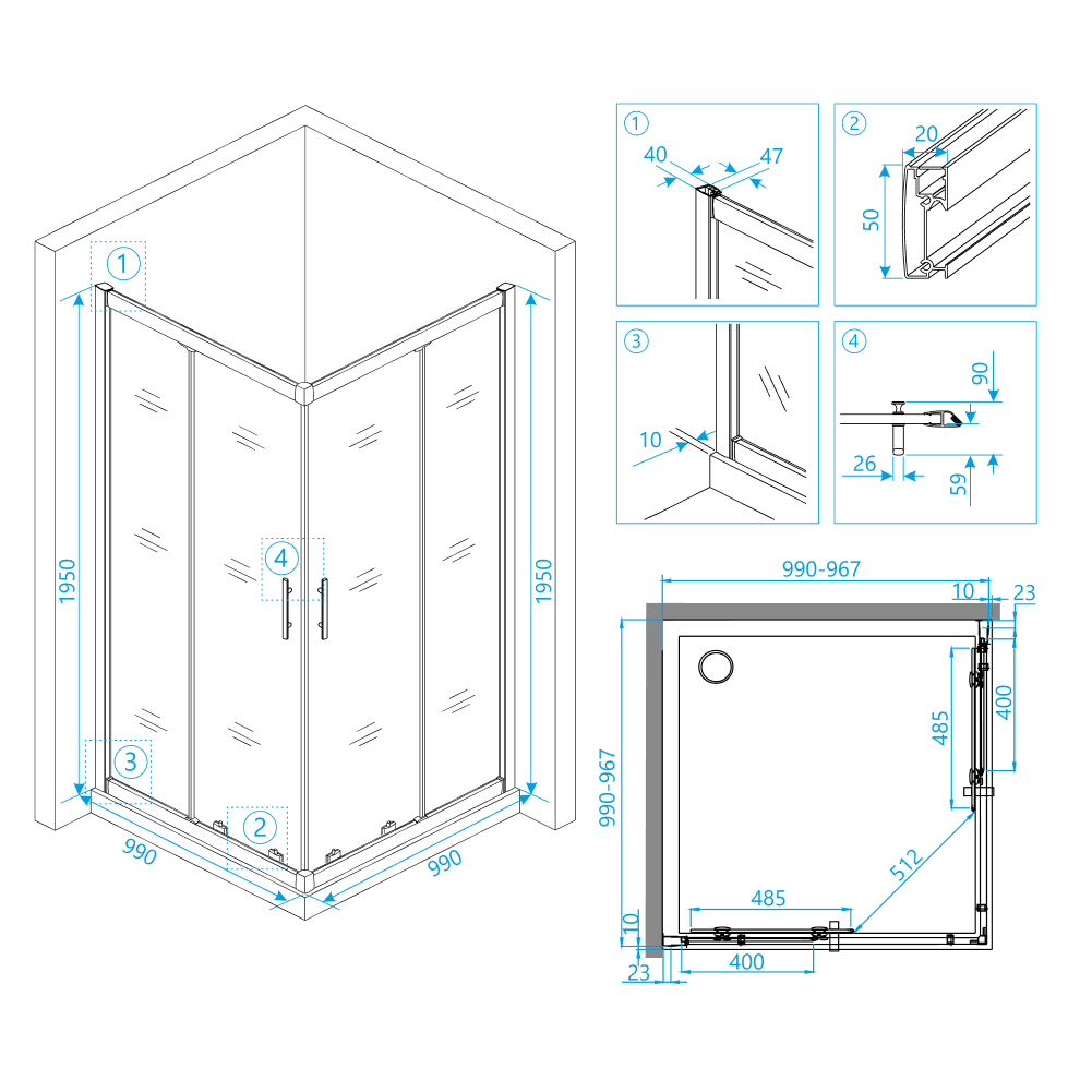 Душевой уголок RGW HO-31 Прозрачное 1000x1000