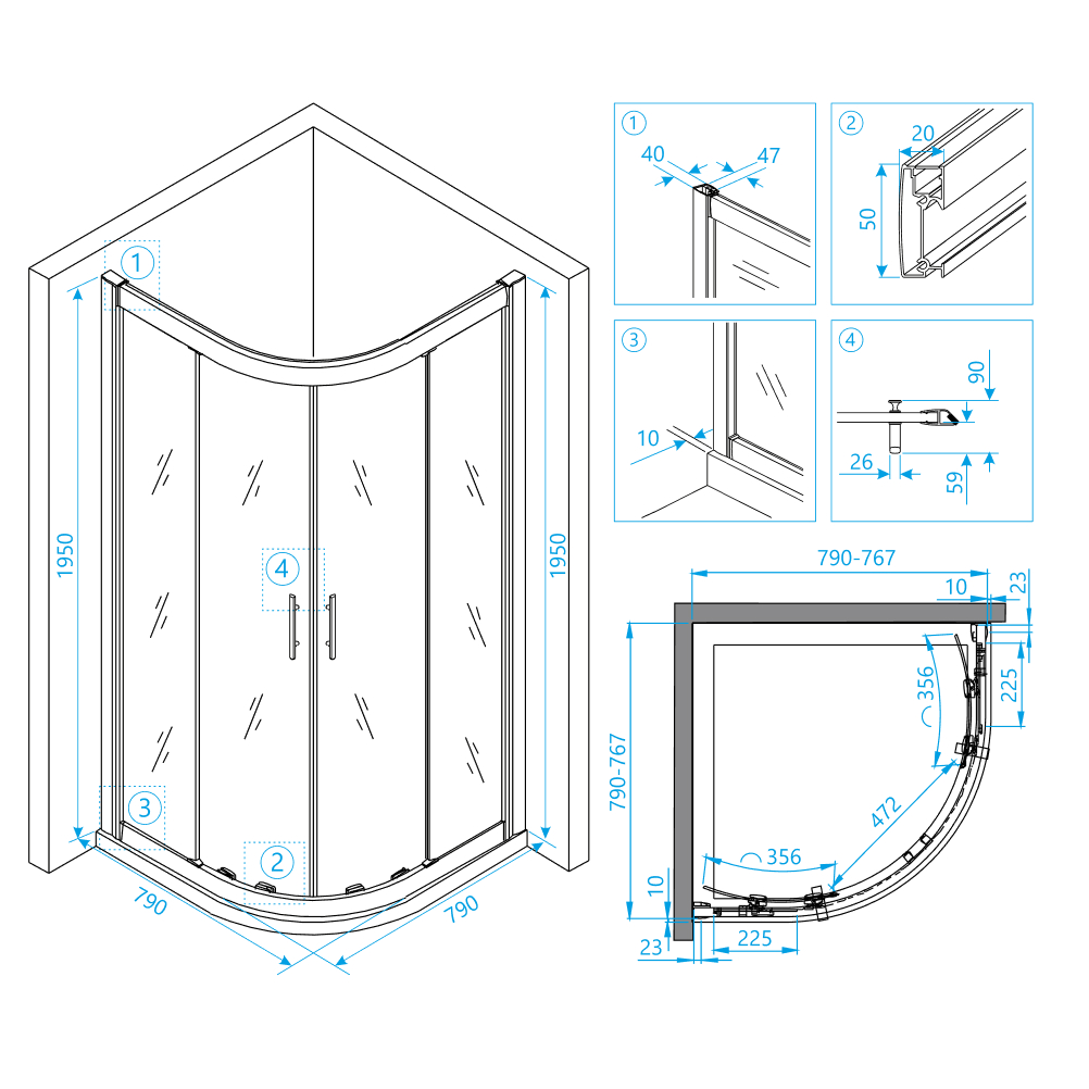 Размер душевой кабины