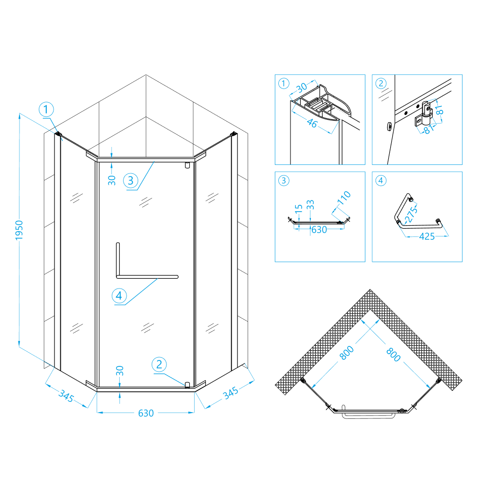 Душевой уголок RGW PA-81 Матовое-Сатинат 800x800