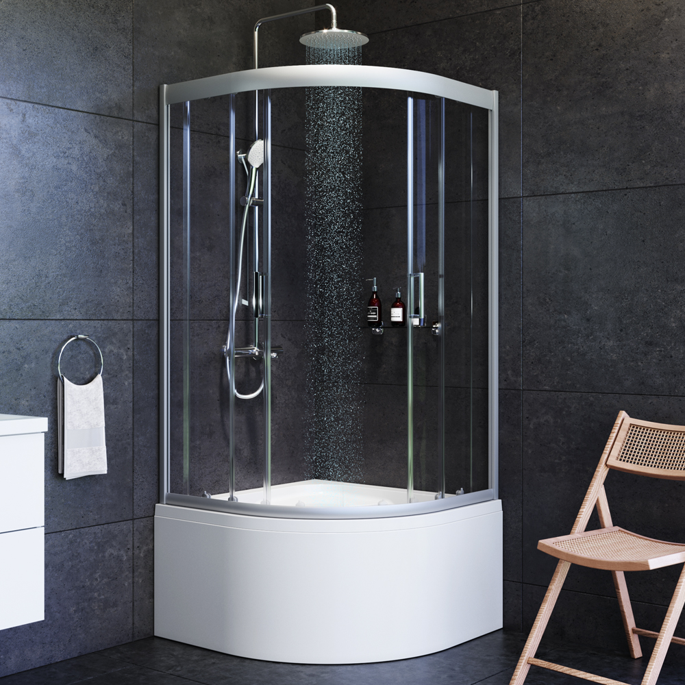 Cистема крепления профилей QuickFix. Простой и быстрый монтаж душевого ограждения. Надежные хромированные двойные ролики – Не менее 150 000 открываний. Прозрачное закаленное стекло толщиной 5 мм. Ручка из анодированного алюминия. Поддон преобретается отдельно W90T-401A090W