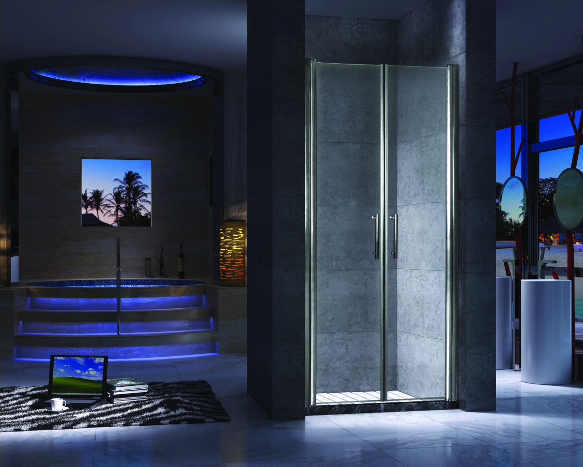 Внутренняя сторона стекла обработа по технологии "easy clean glass". Профиль: хромированный алюминий. Ручка: металл с нанесённым фирменным логотипом. Монтаж на обе стороны.