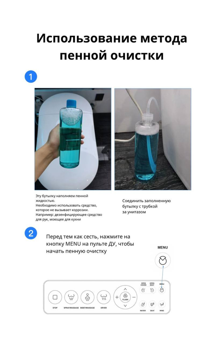 Электронный унитаз оснащен: несколькими функциями биде, самоочишающейся, двигающейся форсункой с настраиваемым напором воды, регулировкой положения, автоматическим открытием крышки, подогревом сиденья, быстрым нагреванием воды, сушкой, регулировкой температуры воды и сушки, регулировкой давления воды, автоматическим смывом, который также работает с отключенным питанием. ДУ пульт управления. Смарт-стикер управления,боковая кнопка управления функциями, встроенное дезодорирование, ночная подсветка, UV стерилизация, антибактериальное покрытие сиденья, LED экран, грязеотталкивающее покрытие глазури Напряжение 110/220V