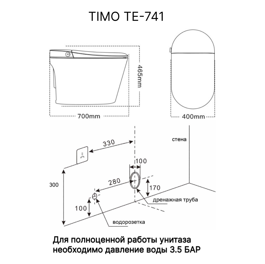 Электронный напольный унитаз-биде TIMO TЕ-741B