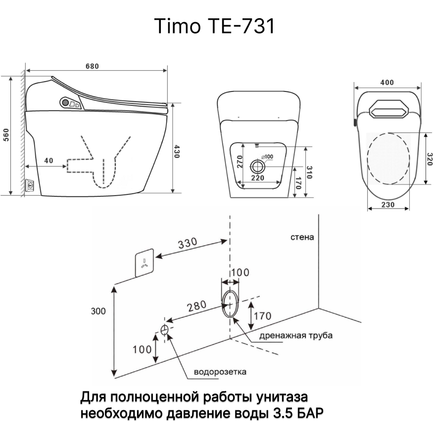 Электронный унитаз-биде Timo TE-731