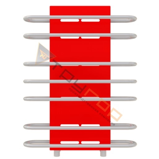 Дизайн-радиатор «Люминес» из новой коллекции. Снабжен небольшими окошечками со светодиодной подсветкой. Прямоугольная панель насыщенного ярко-красного цвета «зажата» семью перекладинами в форме скобок. Углы скобок закругленные. Эта модель прекрасно совмещает в себе практичность и эфектный дизайн.