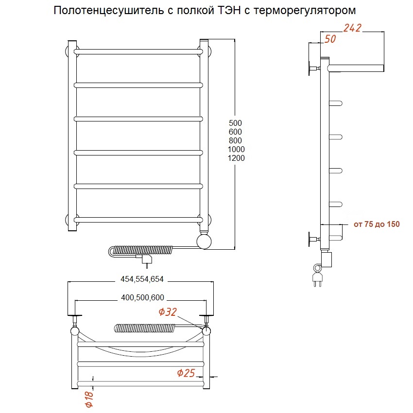 Электрический полотенцесушитель «БРАВО» серия 1 с полкой