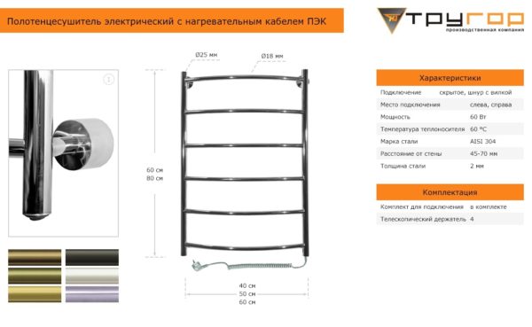 Лесенка традиционного вида. Перекладины имеют форму дуг, расположенных на одинаковом расстоянии друг от друга. Отличный выбор, для множества интерьеров ванных комнат.