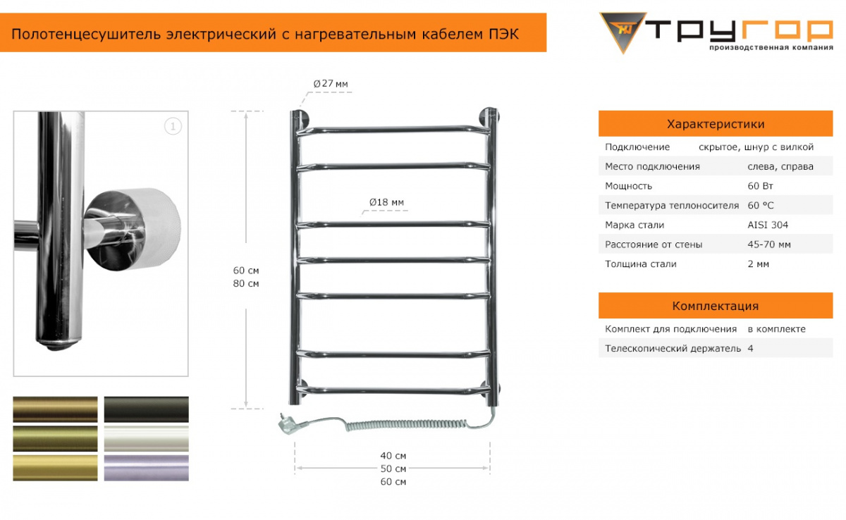 Электрический полотенцесушитель ПЭК6