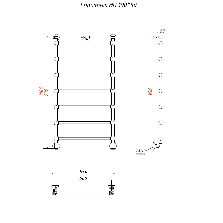 Водяной полотенцесушитель «ГОРИЗОНТ» НП